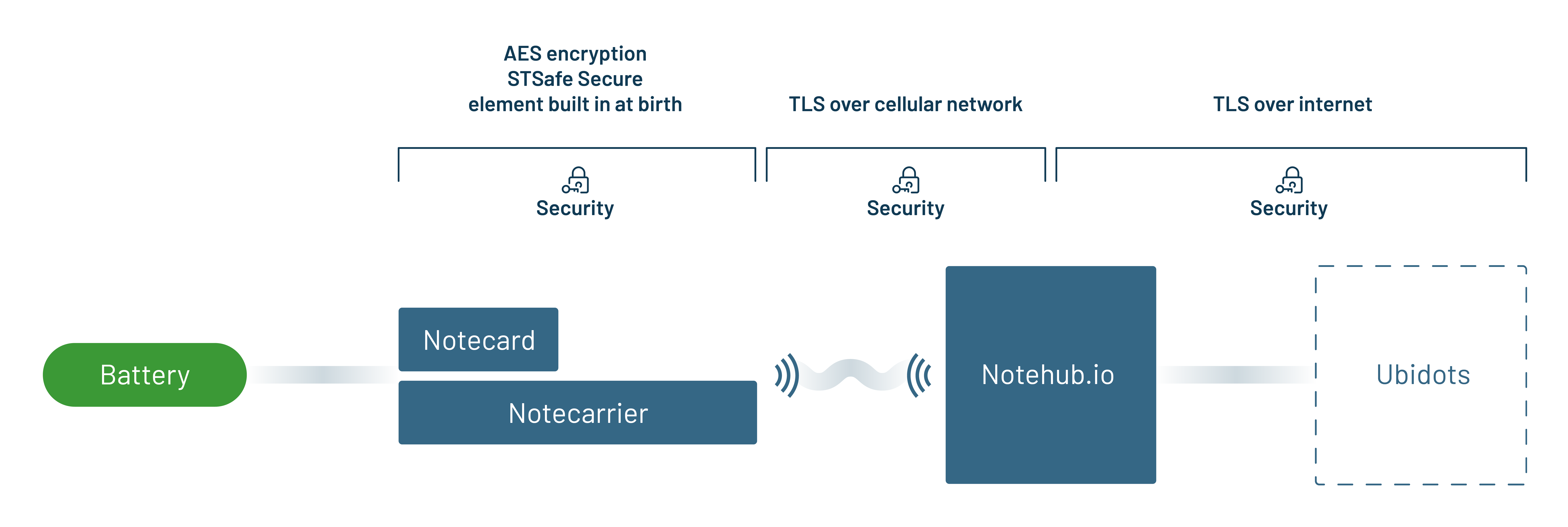 The Notecard is preconfigured to securely communicate with Notehub.io.