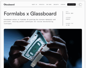 Glassboard relies on Formlabs 3D printing for diverse materials and precision, ensuring perfect prototypes for various manufacturing techniques.