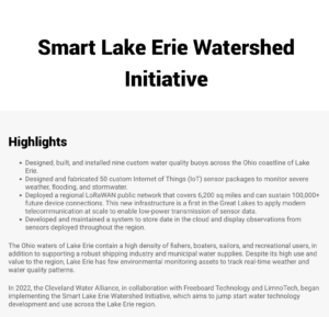 Freeboard Technology, a subsidiary of LimnoTech, is building smarter environmental sensor networks for lakes, rivers, estuaries, and wetlands, blending proven and emerging technology to monitor and forecast environmental conditions. Access to modern, cost-effective sensing systems is needed to monitor for impacts from climate change, excess nutrient runoff, toxic algae, hypoxia, extreme flooding, dangerous currents, and high winds and coastal erosion. Our staff have the experience to design, build, deploy, and maintain a network of complex sensors and integrate data and intelligence from satellites, high-resolution models, and cutting-edge research.