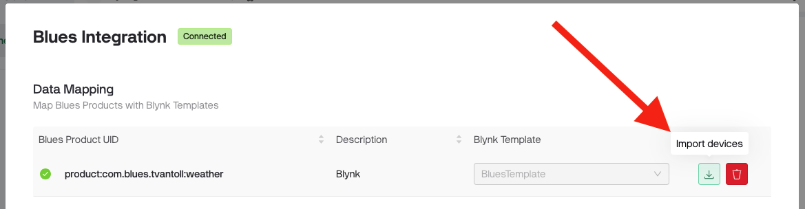 Once connected, Blynk can automatically import your Notehub devices into their Console environment.