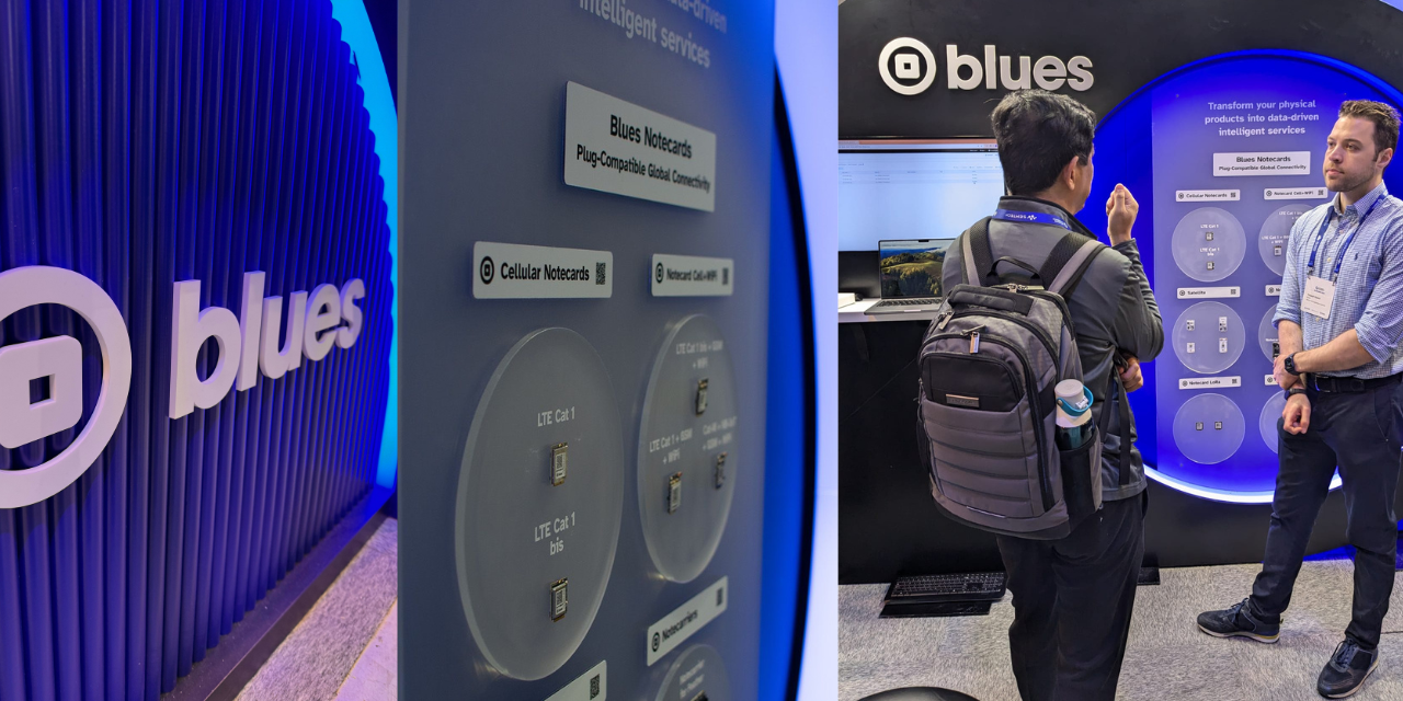 As gold sponsors, we wanted to deliver an immersive experience! Our booth showcased the complete range of Blues Notecards and Notecarriers, giving attendees a hands-on demonstration of our technology. Attendees were excited by our live demo measuring the air quality of the venue in real-time, visualized through a dashboard powered by our partner, Datacake.